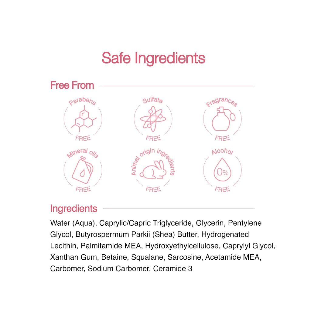 Water/Eau, Caprylic/Capric Triglyceride, Glycerin, Pentylene Glycol, Butyrospermum Parkii (Shea) Butter, Hydrogenated Lecithin, Palmitamide MEA, Hydroxyethylcellulose, Caprylyl Glycol, Xanthan Gum, Betaine, Squalane, Sarcosine, Acetamide MEA, Carbomer, Sodium Carbomer, Ceramide 3